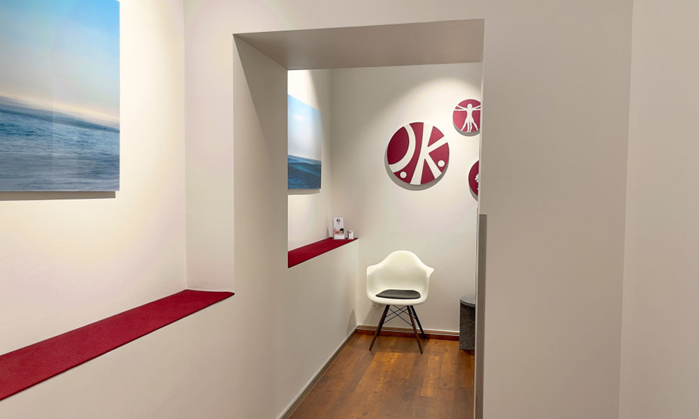 Unsere Praxis befindet sich in zentraler Lage in der Innenstadt von Düsseldorf und ist zugleich ein Rückzugsort mit angenehmer Atmosphäre. Helle, großzügige Räume und eine klare, aufgeräumte Gestaltung schaffen eine Umgebung, in der Sie sich sofort willkommen und gut aufgehoben fühlen. Jeder Raum ist so gestaltet, dass er eine professionelle Behandlung in entspannter Stimmung möglich macht.