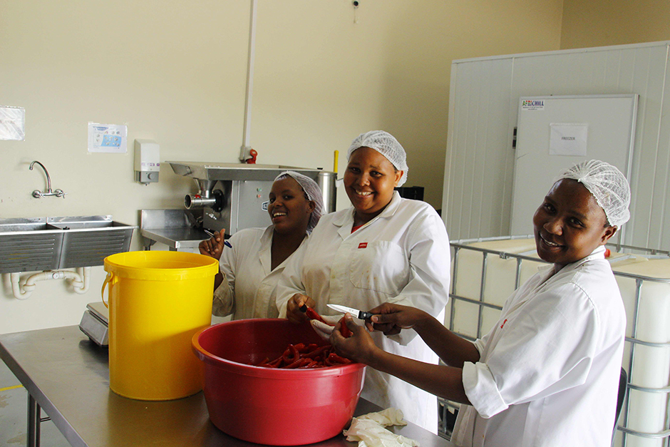 Unsere Freundin Claudia Castellanos Roques, die in Swaziland lebt, stellt mit lokalen Landfrauen unter dem Label „Black Mamba“ verschiedene Chilisaucen und Pestos her.